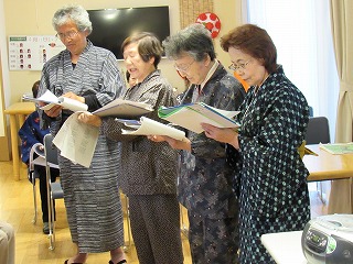 お別れに、ホームのスタッフの方が「皆さんで民話の会の方々に、お礼を言いましょうね」