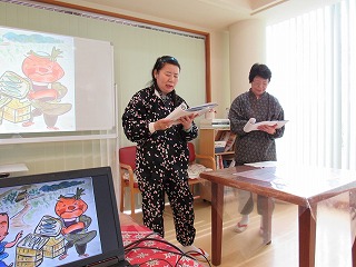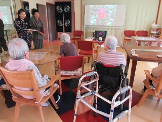 のです。桜や椿、菖蒲などを10分位上演しました。ここの方々にはとても新鮮にうつったようで大変喜んでいま