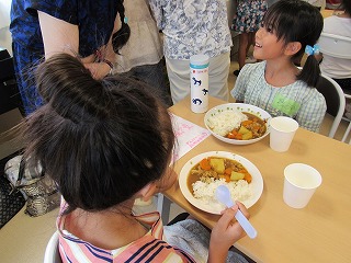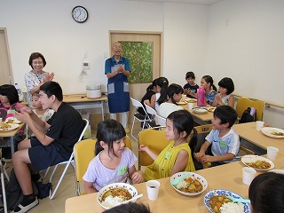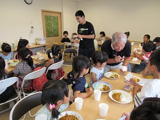 出来あがった甘くて美味しいカレーライスをたくさんいただきました。子供たちはすこぶる健康で行儀よく並んでおかわりをしたり、おしゃべりをしながら元気いっぱいだ。たのもしいな~。