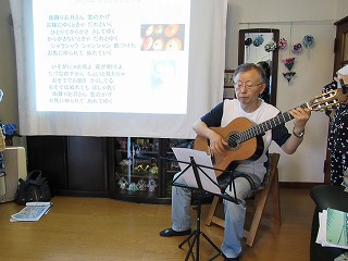 ギター伴奏による歌のプレゼントの時間も皆大きな声で熱唱しました。元気がでたと思います。