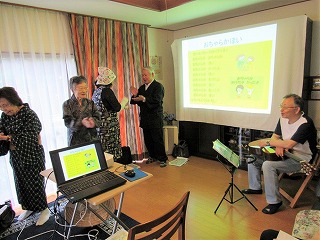 さて、本日は藤田洋子氏が代表の「楽々おしゃべりサロン」でのお話会です。会員15名参加でした。