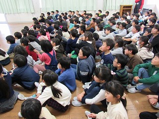 小学校2年生142名。全てのクラスが担任とともにはいっていました。部屋はいっぱい。