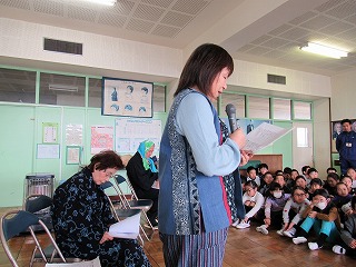 今日で最終日、所沢小学校での2時間(170名の生徒)の授業でした。会員4名で頑張りました。