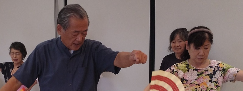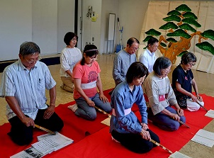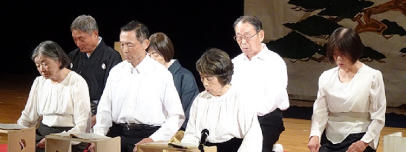 7月15日(火)13:30から新所沢まちづくりセンターのホールにて川越市、朝霞市の竹内先生の指導の同好のメンバーとともに謡曲・仕舞を実演した。(40名参加)