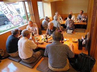 講座の後は、17名の参加者が集い、暑い夏を乗り切れるよう和風レストラン「天狗」で先生を囲んで、和やかな座談