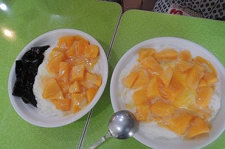 3時間ほどで台北松山空港へ。この空港は1936年に日本統治時代・総督府が建設した台湾初の公共飛行場で、台湾桃園飛行場より都心に近いので便利です。 おやつに3 年前行って美味しかった雙連駅近くの「 ピンザン」店へ。「マンゴーのかき氷」が大評判の夏季限定の店で、日本人客も大勢、家族づれも。 仙草とマンゴーのかき氷200元 マンゴーのかき氷150元(545円)