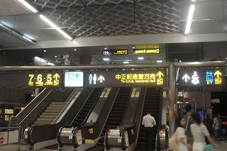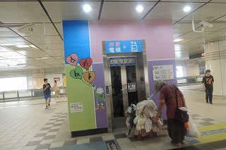 「博愛電梯」とは博愛エレベーターの意味です。ちょうどお年寄りがいました。駅 のホームの電光表示は大きくて見やすいのです。日本の交通機関の表示は小さくて見やすくありません。ホームの落下防止ドアは台北では完備されています。日 本では地下鉄南北線以外は整備中です。日本は安全の後進国です。切符の自動販売機には言語を選び、日本語を押すと字と音声が日本語になります。慣れたら一 般の自動販売機で買いました。