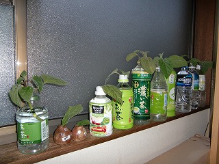 我が家の窓際はペットポトル埋め尽くされるかも!葉っぱはペットポトルに挿すには適さないので適当な物を探すことに