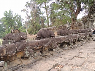またタプローム寺院にはカジュマルの一種のスポアンの木の太い根が遺跡にからみついて、遺跡の保存に苦心している