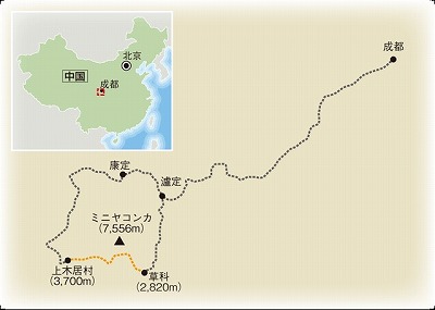登山困難な山のトップ3は、エベレスト、K2、ミニヤコンカと言われている。 10年前、観光施設(観光道路とリフト)の完工に先立ち、幸運にもミニヤコンカを間近かに見る事が出来た。 ミ二ヤコンカは四川省大雪山脈の最高峰で標高は7,556m、チベット語で白氷雪という意味である。急峻で天候が急激に変化するため、登頂成功者は20名にも満たない魔の山である。 1932年、アメリカ登山隊が初登頂に成功した。日本では1997年にコンカ山登山隊が初めて成功したが、それまでに1981年の北海道山岳連盟登山隊(8名滑落死)、1982年の市川山岳会登山隊(2名遭難―1名は19日後、奇跡的にイ族により救助された)、1994年日本ヒマラヤ協会隊(4名行方不明)という惨憺たる状況だった。 私は以前、日中青年研修協会の理事として中国での植林事業に関係していた。 小渕首相の時代に、中国での治水、日本での黄砂飛来防止には、植林が必要であるという事が両国で認識されて、日中共同で中国での植林事業を進める事になった。 日本側は、10年間で100憶円を負担する規模(中国もほぼ同額)で、活動がスタートした。2000年から我々の協会は、中華全国青年連合会と協力して、宜賓(四川省)、雅安(四川省)、岳陽(湖南省)、共青城(江西省)、阜新(遼寧省)等での植林を実施した。 ミニヤコンカを見る機会が得られたのは2007年5月、四川省甘牧州濾定県で植林を行った時の事である。 濾定県は標高2000mで70%がチベット族。紅軍が長征をスタートさせた所で国民軍との激しい戦闘があった濾定橋は、植樹祭を行った広場の傍にあった。 植樹祭には日本から我々2名、全青連から3名、甘牧州から数名が役員として参加。一般参加は地元の農民、役人、軍人、学生、等。2000名に対してのスピーチでは、流石緊張した。