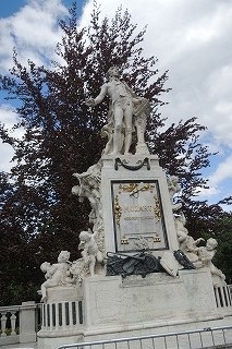 美術史博物館を出て向かいが「ブルク(王宮)庭園」で、ベンチに座って休憩です。モーツアルトの像が花壇のト音記号の前に立っています。ヨーロッパの元気