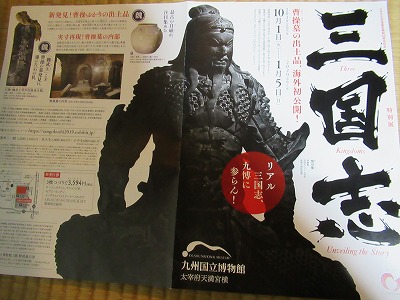 BSで『イツァーク・パールマン』を見ました。イスラエル生まれ。幼少にポリオにかかり下半身が不自由になりますが、それを乗り越え世界的なバイオリニストに。彼の「ストラディバリウス」は1714年製で、ハイフェッツから譲られたものです。マルタ・アルゲリッチなどクラシックの名手だけでなくビリー・ジョエルらとも共演。『バイオリンが好きだから自分だけの音を出したい。』といいます。 ▼10月某日 大宰府へ。参拝してから大宰府の「梅が枝餅」をほおばりながら国立九州博物館の『三国志展』へ。上野・国立博物館では混雑していたので、福岡で観ようと決めていたのです。