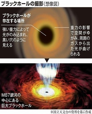 た。 ブラックホールの存在は、100年余り前、アインシュタインが発表した「一般相対性理論」をもとに予言されました。 しかし、実際の観測では長い間見つからず、ブラックホールとされる天体が初めて見つかったのは50年以上たった1971年でした。 その後、非常に遠くにありながら明るく輝いて見える天体には、エネルギー源としてブラックホールがあるとされるなど、候補と考えられる天体が次々に観測されるようになりました。 しかし、どうしても見ることができなかったのが、黒い穴のように見える「ブラックホールの影」の部分、地球から遠くにあるブラックホールはこれまでの望遠鏡で観測するには限界があったためです。 以上。
