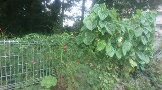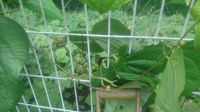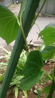 畑の一番目立つところに春植えた。印は点けて、支柱もしていたが、何時まで経っても芽が出ず、初めてのことでもあり心配した。芽が出てからは思ったよりも