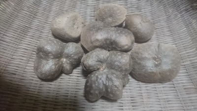 収穫した宇宙芋 下3個は生り口上 上4個は裏 食べる気起こりますか?