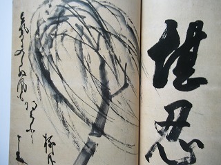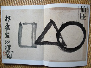 〇△□ 初めてこの画を見た時、『何だ?こりゃ?!』と思った瞬間は今も忘れません。『神道、儒教、仏教』を表したものという解釈が最有力とか。 〇から△さらに□へと書いたようにみえますが(□の墨のかすれ具合から)、仙厓は□から△、〇へと書いたと云われています。仙厓が『私は修行中の身、三角であり完全な円になっていない』と53才のとき本山・妙心寺の大通住職への手紙に書いているのです。