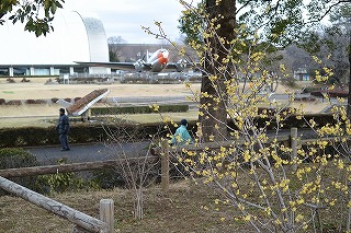 2月8日(月)の10:30頃、航空記念公園の梅と蝋梅を撮ってきました。 蝋梅も写っていますが、蝋梅と言うよりはc46輸送機や散歩している人の方に目が行ってしまいますので、 航空記念公園のワン・シーンといった所です。