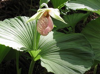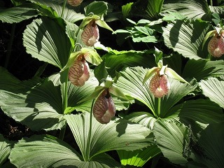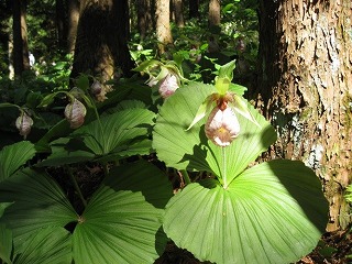福島県松川町水原で5月13日に撮影した熊谷草(くまがいそう)の写真です。場所は安達太良山麓の山林で、一面の熊 谷草の自生地です。熊谷草の自生地はここを含め日本で3か所しかないそうです。 絶滅危惧種とされ、地元の人たちにより保護されています。