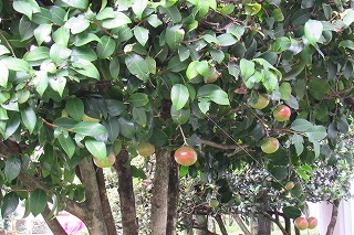 猛暑の中、サザンカの実がたくさんなっていました。