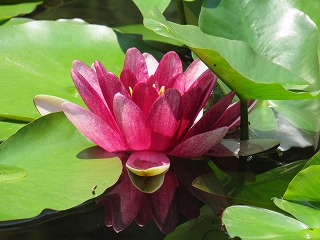 陽射しを避けて、彩翔亭で一服した。小さな池の中に蓮の花がしずかに浮かんでいた。