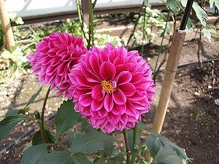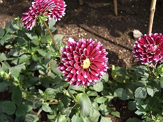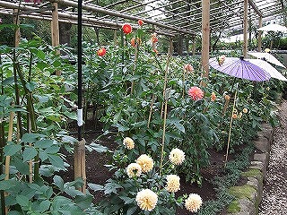 今が盛りと色とりどりのダリアが咲いていた。“アリス”、“ダリアコンペ”、大輪“山開き”等々の名札が添えてあるが面倒になったのでメモは止めた。