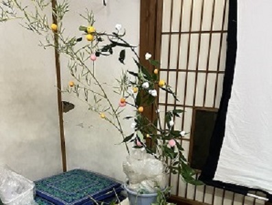 1月20日(火)大寒 上映会(喜劇「急行列車」:渥美清)時 季節の歳時記「繭玉飾り」をお祝いしました。