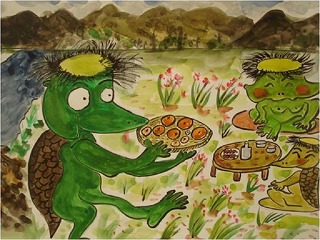 テーブルでしたが、童話「かっぱのすもう」を語りました。