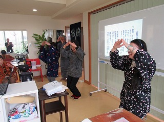 この様子を見ていた施設の方がリクエストで最後にもう一度歌って踊ることになりました。身体を動かすことはと