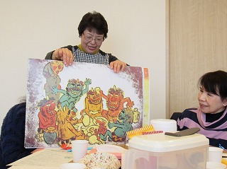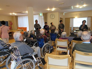 お別れに、ホームのスタッフの方が「皆さんで民話の会の方々に、お礼を言いましょうね」