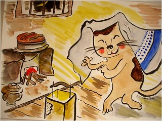 つぎに、所沢の民話「福猫塚」を語りました。