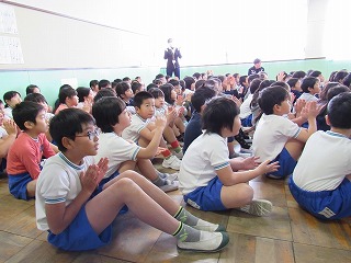 児童、3年生184名 校長先生をはじめ7名の先生方がやさしい眼差しで参加いただきました。