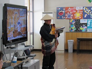 今年度は明峰小学校で学校訪問は3校目。段々と「語り」も調子が出てきました。
