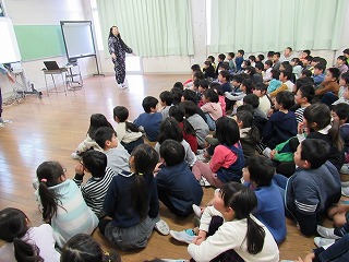 小学校2年生142名。全てのクラスが担任とともにはいっていました。部屋はいっぱい。
