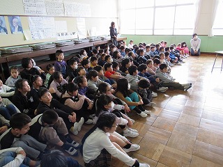 今日で最終日、所沢小学校での2時間(170名の生徒)の授業でした。会員4名で頑張りました。