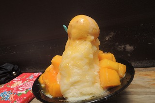 3時間ほどで台北松山空港へ。この空港は1936年に日本統治時代・総督府が建設した台湾初の公共飛行場で、台湾桃園飛行場より都心に近いので便利です。 おやつに3 年前行って美味しかった雙連駅近くの「 ピンザン」店へ。「マンゴーのかき氷」が大評判の夏季限定の店で、日本人客も大勢、家族づれも。 仙草とマンゴーのかき氷200元 マンゴーのかき氷150元(545円)