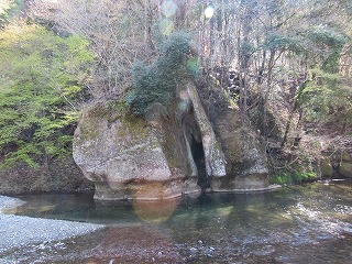 最初の目的地「奇岩 御前岩」へ着いた。ここは、徳川光圀公が領内検分の折、御前岩をご覧になられると「これは