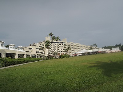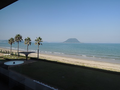 | 2017 -10 -07 記 ケン・シェイクスビア ▼義姪の結婚式のため秘書兼ケアマネと福岡へ半年ぶりに行ってきました。桜が満開だった福岡は、彼岸花が真っ 赤に燃えていました。結婚式のあった日田は広場77号に書いたとおり3年前にひとり旅で行ったのですが、今年 の風水害をのりこえ、天領の穏やかな街並みでした。葬式とちがって、やはり明るく華やかな結婚式はいいもので す。 ▼9月某日 福岡の志賀島近く、海の中道海浜公園の「ザ・ルイガンズスパ&リゾート」へ孫たちと1泊。開業 10周年記念イベントをにぎやかにやっていました。メキシコの建築家ルイガンズの設計になる茶色を基調にした エキゾチックな感じのホテルです。眼前に広がる海と広い庭園がゆったりした気分にさせてくれます。