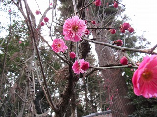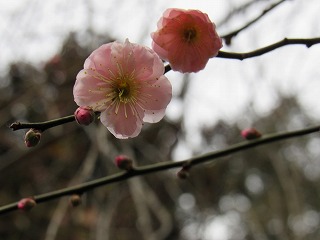 | 2017 2 -1 記 仲山富夫 酉年睦月すでに晦日になった。早いな~。 主治医から歩きなさいと言われていたのを思い出して、今日は意を決して一万歩を目標に散歩に出た。曇り日で風がな い。 今朝は北野天満宮目指し、紅梅がそろそろ咲き始めた頃だろうと思いながらそぞろ歩く。 参道右側を歩きながら見れば、紅梅がいくらかほころんでいた。 お賽銭は正月だからと10円硬貨(いつもは5円玉)、家族の健康を祈って柏手を打った。 可愛い梅の花を撮る。