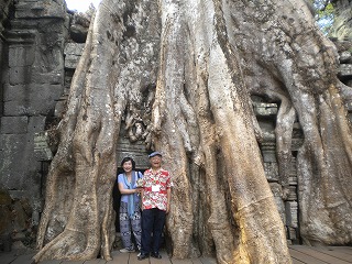 またタプローム寺院にはカジュマルの一種のスポアンの木の太い根が遺跡にからみついて、遺跡の保存に苦心している