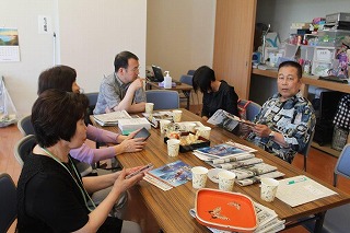 め週2回、1階の集会所で交流会を開いています。テーブルには福島県内のいくつか