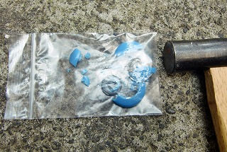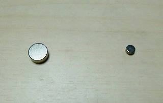 | 2016 5 -28 記 玉上佳彦 小学生の子供達が目を輝かせる面白科学実験の第2弾をを紹介します。 以下の方法で実験して、お孫さん達に科学の興味を持ってもらえると幸いです。 〔準備するもの〕 フェライト磁石、ネオジム磁石、かなづち、ポリ袋(厚手)、フィルムケース (注)・フェライト磁石:冷蔵庫の扉などにつけるマグネットで、プラスチックの裏側についている磁石です。 ・ネオジム磁石:レアメタルの一種ネオジムを使った磁石で、現在最も強力な永久磁石といわれて います。百均ショップで「強力磁石」という名で販売されています。 ・フィルムケース:最近はデジタルカメラが主流なので、フィルムケースは手に入りにくいので、蓋の ないヤクルト容器などでも可。シャカシャカするときは指で開口部を抑えて下さい。 〔実験の手順〕 1.フェライト磁石を、厚手のポリ袋に入れ、石やコンクリートなどの固いものの上に置き、かなづちで叩いて、 磁石を細かく砕きます。
