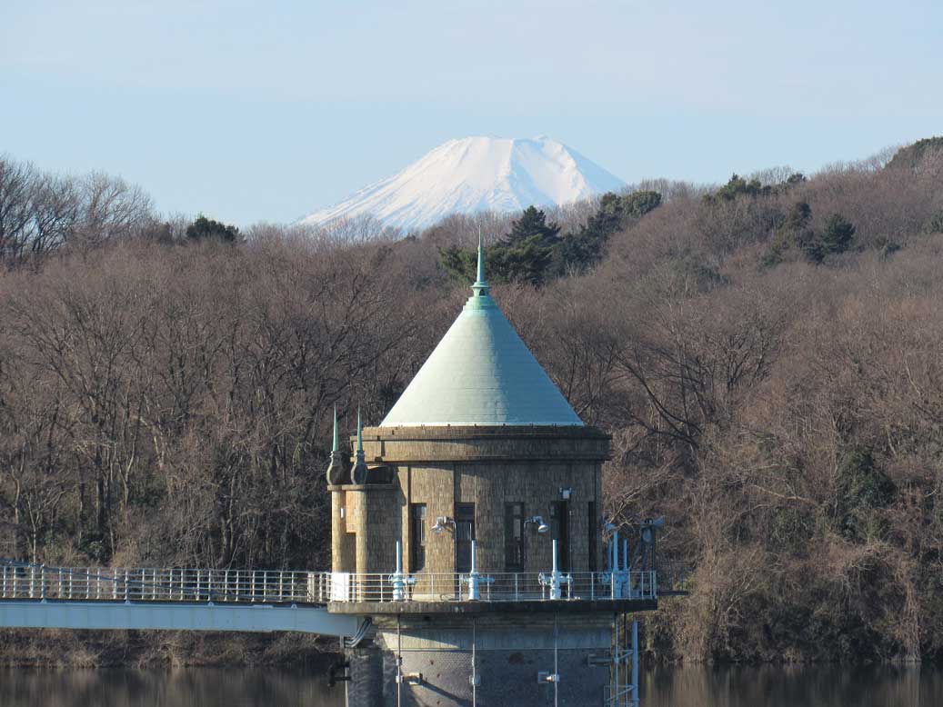 尻と手に泥がついたがいたしかたない。 マラソン人が一人走っていった。 狭山湖畔には、ちらほら人がいた。遠くに富士の山がくっきりと白い頭を出している。 いつも眺め入るが奇麗だなー。