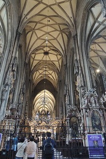 です。シュテファン寺院1359年完成 塔は136.7m。外観はゴシック様式 内部はバロック様式で、私は1時間坐ってすごしましたが、アントワープの
