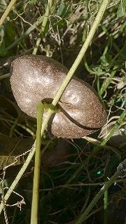 め掛けていた。ところが昨年見たような小さな「むかご」の様な実が一個!嬉しかった。写真にも傷めないように葉を避けて撮った。朝顔も一緒に茂った。