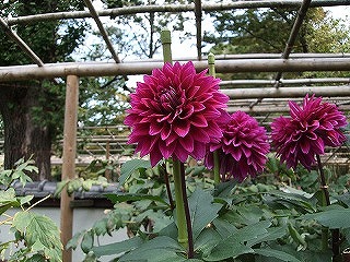 今が盛りと色とりどりのダリアが咲いていた。“アリス”、“ダリアコンペ”、大輪“山開き”等々の名札が添えてあるが面倒になったのでメモは止めた。