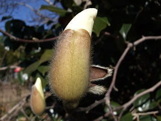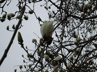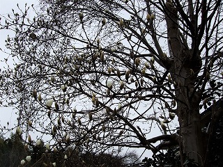 2月28日早朝に、所沢市小手指町で、大きな白木蓮の樹につぼみを見つけた。