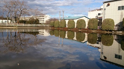・その池に周りの景色が写っていた