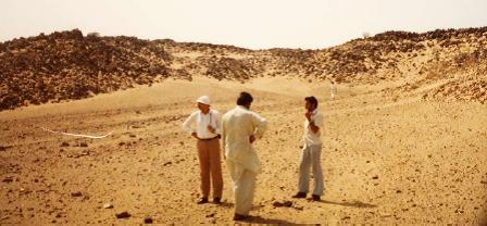 威圧感があり、小心者の私は緊張し ホテルで仮眠したが、早速、その夜6時からミーティングがあると言う。聞くと、 ちょうどラマダン(断食)の時期で、日没 後の夜間に活動するのだという。夏・冬季時間は聞くが、外国に無知な私は戸惑うばかりである。 いよいよキックオフミーティングが始まった。上司はジャパニーズ英語なので多少 は理解できるが、相手の外人さんたちが話 す言葉と内容がまるで分らない。そして、会議の終盤になって「あとはこの田中がやります!」と上司の口からでた。途端に 全員が私を見る。「なんてことだ!冗談でしょう!」と心中叫んだ。 その後も、客先担当者たち、ドイツのコンサルタント、現地のロイヤルコンサルタント 、エイジェントなどと、打合せが連日 めまぐるしく続く。頭の中はグルグルでパンク寸前である。 約一週間後、課長と係長は私を残して、本当に帰国してしまった。さて、弱った! 英語もまともに話せないのだ。やりきれ ないほど心細い! しかし、幸いなことに禁酒の国なので、夜は外出もせず酒も飲まずに、 ホテルで中学時代の英語と技術の勉学にいそしむこと が出来たのは幸いした。まさに実践訓練だ。 現地での協力会社はパキスタンの現地法人で、既に下請け契約を交わされていた。 まずは、そのパキスタン人の技術屋たちと 打合せ、現地を見ながら具体的に今後必要なもののリストとアクションプランの作成を開始することにした。また、協力会社 の現場事務所と資材置き場の一角に我々のコンテナハウスを設置してもらい、当面のベースキャンプにすることとした。 約一か月後に一時帰国し、2週間後再び測量隊6名とともに現地入りして ルート選定と測量作業にかかる。 測量隊のリーダーは奇遇にも私と同郷で、出稼ぎ同士がこんなところまで来て、