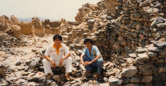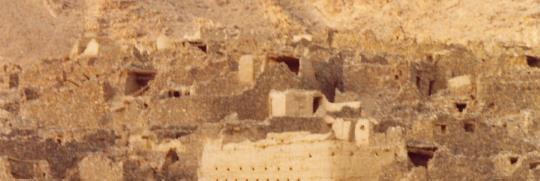 た。緑は無く、岩や砂だけであるが、涸れた川の周囲などに廃墟になった石積みの砦や住宅跡が所々見つかる。水を追って廃